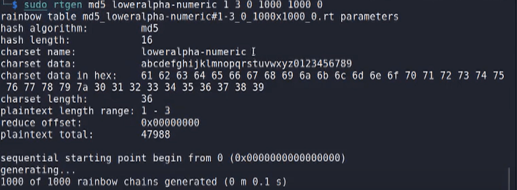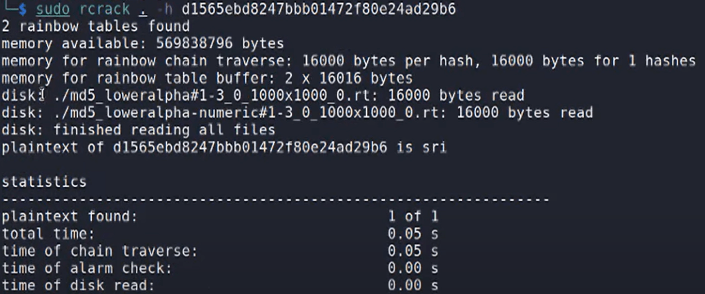 - The Attack: When an attacker steals password hashes, they compare them against the rainbow table. If a match is found, the corresponding plaintext password is revealed!